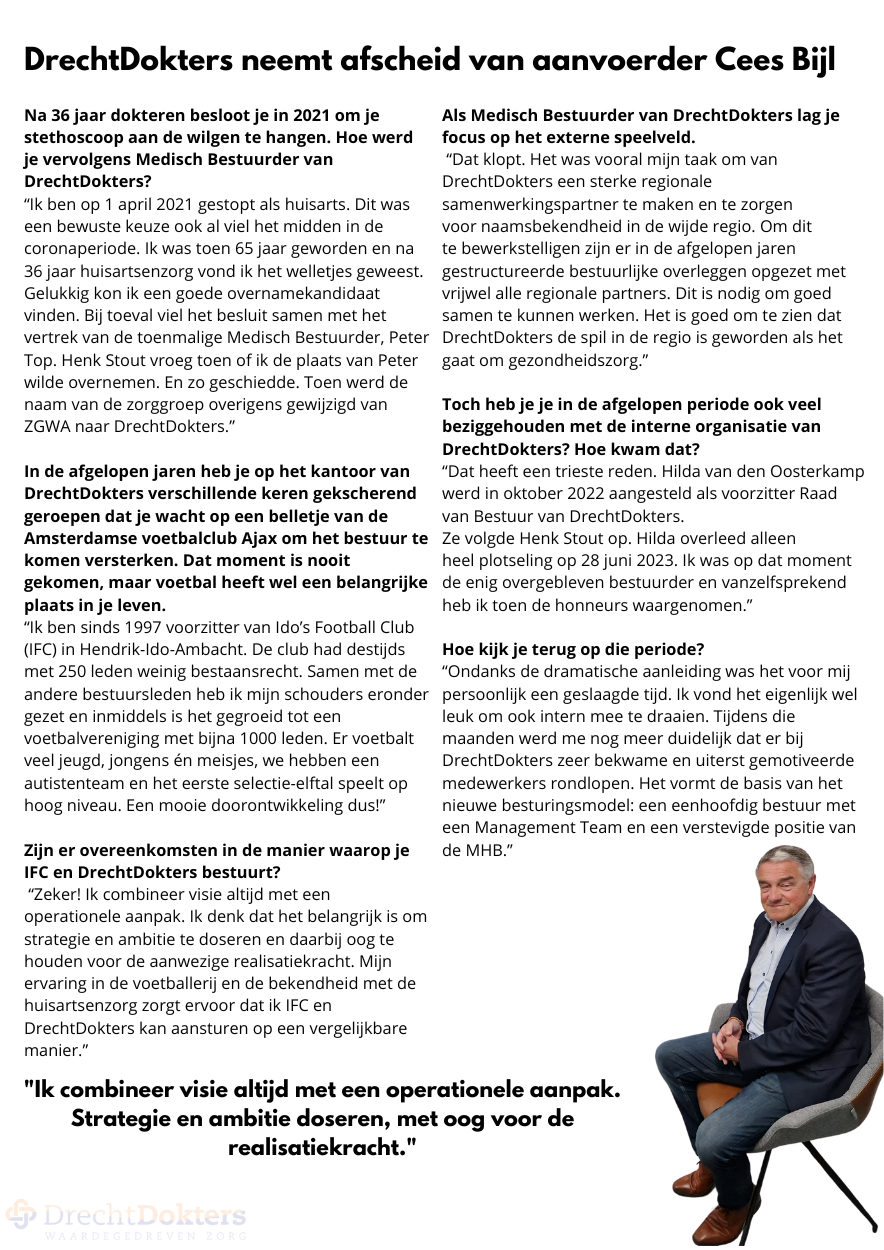 DrechtDokters neemt afscheid van aanvoerder Cees Bijl