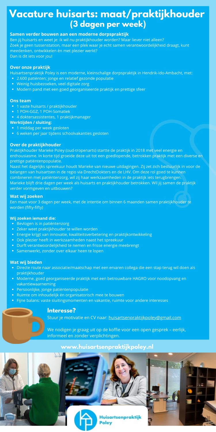 Stuur je motivatie en CV naar: huisartsenpraktijkpoley@gmail.com